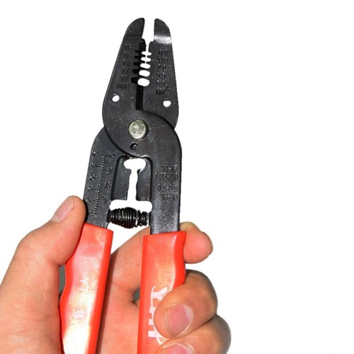 For cutting and crimping, featuring an automatic rebound spring that ensures stripping without damaging the core.