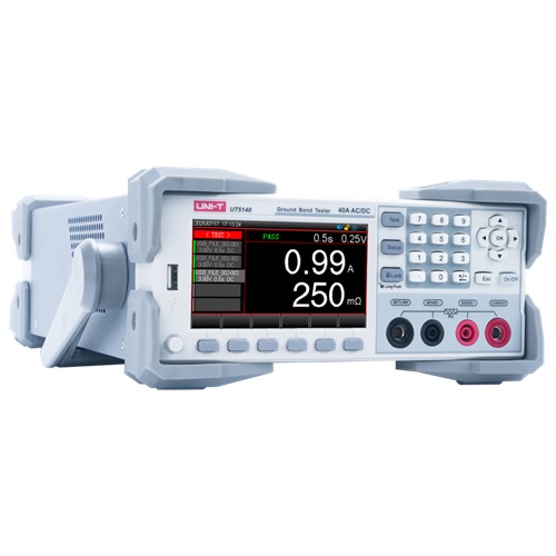 The UT5140 is a next-generation AC/DC ground bond tester featuring a 4.3-inch TFT-LCD display in a compact and lightweight design. With a maximum test current of 40 A, it delivers stable current output for both AC and DC ground testing and adopts a four-terminal configuration to ensure accurate and efficient measurements. Its adjustable open-circuit voltage enhances safety for both operators and the device under test. Equipped with versatile communication interfaces, the UT5140 is an ideal solution for automated systems and production line testing